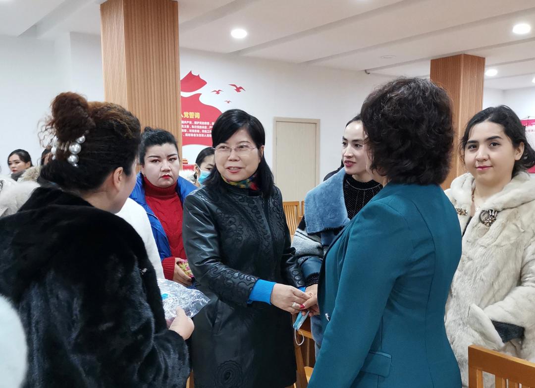 王丽霞表示,看到一批批“新疆古丽”怀揣梦想,从天山南北、塔里木河畔,来到东海之滨、钱塘江畔,在千鹤妇女精神发源地创业就业、成长成才,以新疆妇女特有的淳朴善良品德、吃苦耐劳精神、能歌善舞特长,展现了良好形象,为促进新浙两地经济社会发展和各民族交往交流交融贡献巾帼力量感到非常高兴,衷心为姐妹们点赞。王丽霞指出,浙江人杰地灵、物华天宝,柯桥区又是文化名城、经济强区。在新疆籍务工人员中,妇女约占30%,姐妹们生活在这片热土,与热情友好的浙江人民手足相亲、守望相助,苦干实干、矢志奋斗,努力实现人生出彩和梦想成真。有的成为企业家、致富“领头雁”,有的获得当地许多先进荣誉,有的向党组织递交了入党申请书。疫情期间,一些“新疆古丽”积极参加公益活动,有的打馕做抓饭送一线,有的捐款捐物解民忧,有的在社区楼院当志愿者,在大战大考中绽放了靓丽风采。