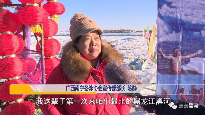 广西南宁冬泳协会宣传部部长 陈静:我这辈子第一次来咱们最北的黑龙江黑河,感觉挺好,而且我们来到边境,看见他们冬泳发展得那么好,我们南方得向他们学习。
