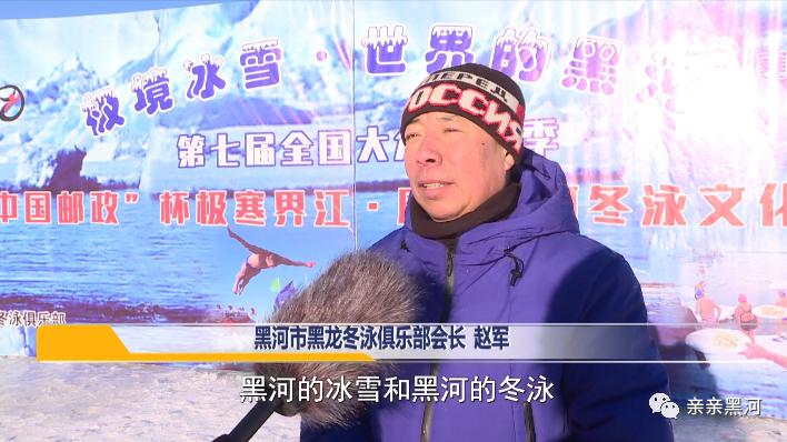 黑河市黑龙冬泳俱乐部会长 赵军:我们这次活动的目的是想打造黑河的品牌,黑河的冰雪和黑河的冬泳,创造黑河在全国的影响力,把我们黑河向全国推广,也让全国知道黑河极境的冬泳。