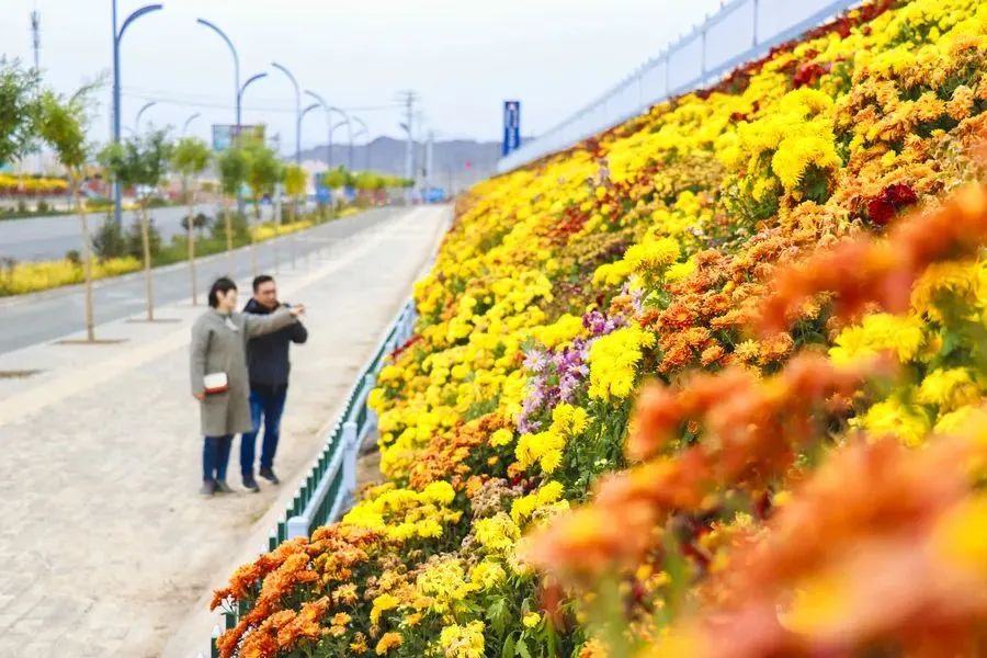 绿在城中驻 人在景中行一路菊色醉金秋