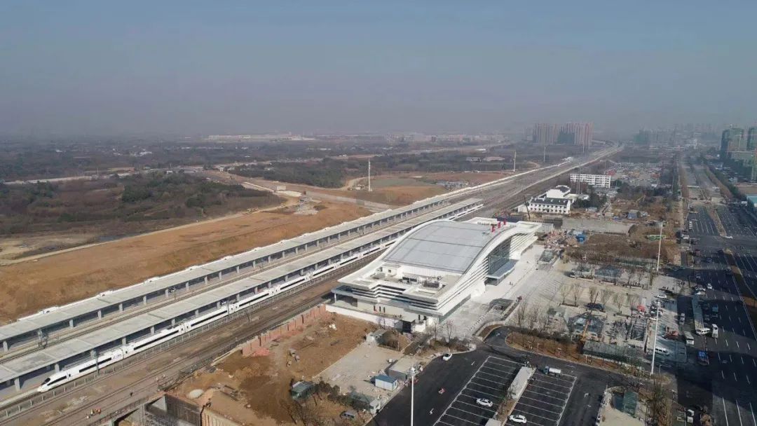 12月21日,一列动车组列车通过合安高铁肥西站。