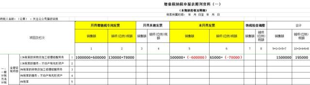 假设10月份甲公司共销售智能存储柜不含税金额150万元,销项税额195000元,其中,有100万元开了专票,剩余50万元未开发票,同时,乙公司又要求甲公司补开7月份的发票,甲公司在申报10月份的增值税申报表时,填报数据如下: