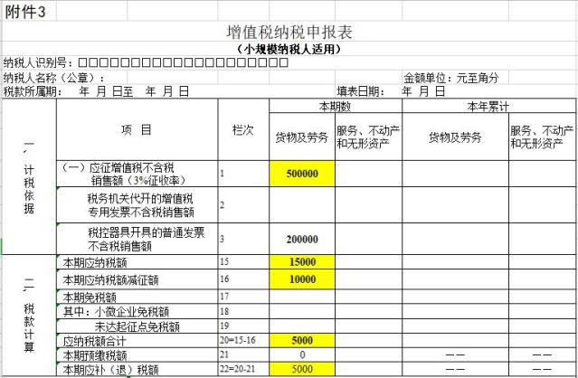 有的小伙伴可能是这样申报的:把本季度已开的30万开票收入填在第三栏,第一栏不用填列数据,原因是:当期申报了30万未开票收入,这期又开票了,所以应冲减上期申报的30万,本期不用缴纳增值税,刚好30-30=0,不用填写了。