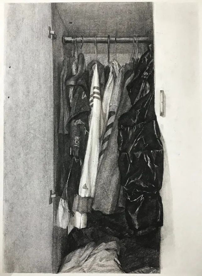 龚正 《衣柜》 26cm×37cm 纸本炭笔 指导教师:余陈实验艺术学院