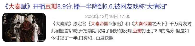 满40-27的秦王政豆瓣评分也从8.9分跳水6.4分,之后还有没有下降空间不好说,但是感觉网友已经很想投票把它开除出大秦帝国系列剧了。