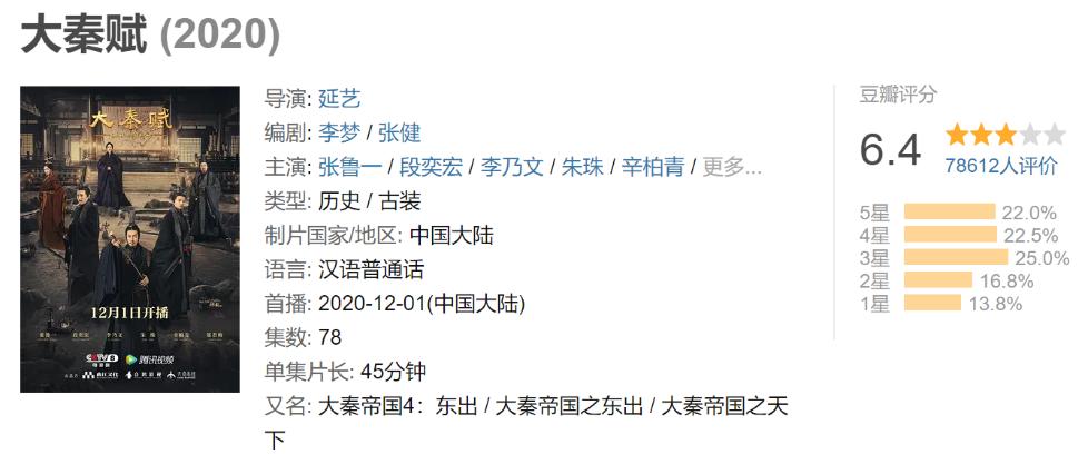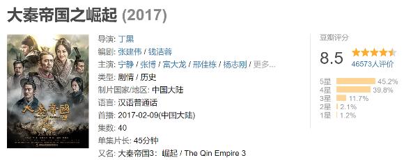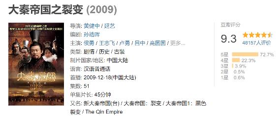 一星期可以让一个剧口碑反转自2009年开始,大秦帝国系列剧四年一部,稳扎稳打。