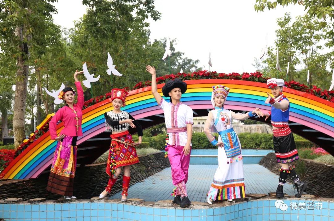 △各民族在芒市小礼堂前跳起了嘎伴光,庆祝中缅边民联华大会64周年 (王冬寅 摄)此次活动,只是芒市大力推进创建全国民族团结进步示范市工作的一个缩影。近年来,芒市始终坚持以铸牢中华民族共同体意识为根本方向,以“中华民族一家亲,同心共筑中国梦”为总目标,紧紧围绕各民族“共同团结奋斗、共同繁荣发展”这个主题,持续深入推进民族团结进步示范市创建工作。通过夯实思想基础、物质基础和打造培育示范典型,全市各族同胞在铸牢中华民族共同体意识上有了新提高,在发展各民族平等团结互助和谐关系上有了新进展,在加快民族地区发展上有了新举措,在保护和传承各民族优秀传统文化上积累了新经验,形成了各民族手足相亲、守望相助、和睦相处、和衷共济、和谐发展的良好局面。