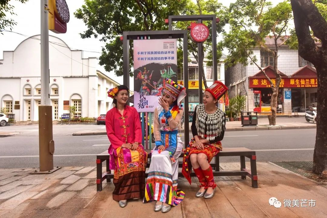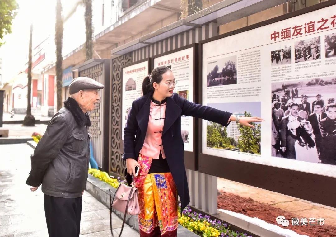 △主播与市民开展民族团结小知识互动问答(王冬寅 摄)在这条承载了浓厚历史文化的街道里,有1956年中缅边民大联欢的会场旧址——芒市小礼堂,也有融入环境的民族团结元素:国画风的民族团结灯箱、民族团结休闲椅、民族团结进步文化长廊、“中华民族一家亲 同心共筑中国梦”景观小品等,既吸引了市民和学生驻足赏读,也兼具了服务广大市民休息的实用功能。