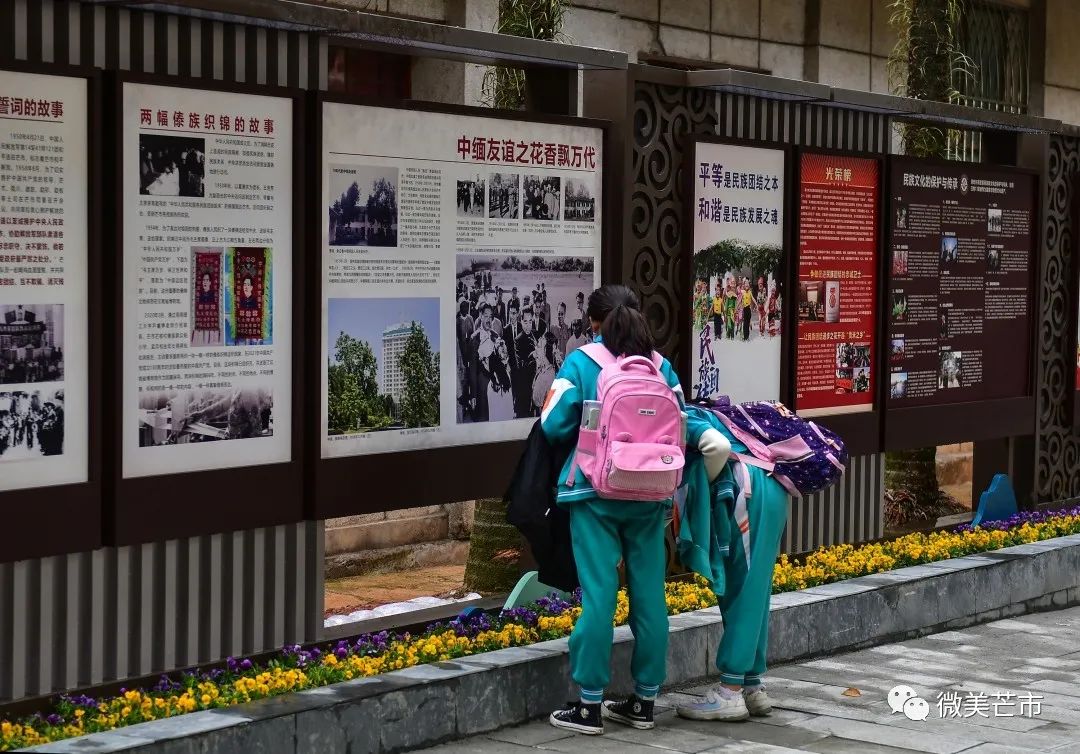 △民族团结进步文化长廊成为了小学生的学习园地(王冬寅 摄)一路前行,一路聆听,与其说这是一次网络直播打卡活动,不如说这是一堂生动的民族团结进步教育网络课。在芒市小礼堂前,大家跳起了傣族嘎伴光,共话民族团结之情,整个活动在一片欢乐的气氛中落下了帷幕。