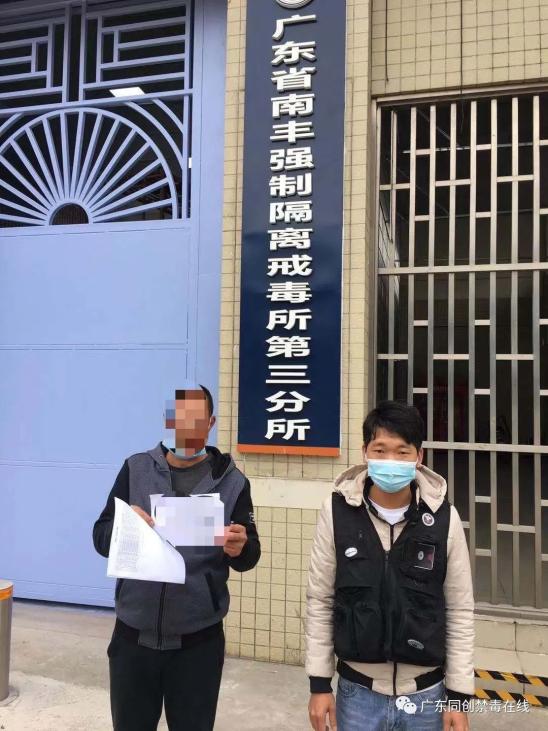上图:三水戒毒所工作站社工在省戒三水所成功把1名出所人员接出,并安排到搭车返回茂名,社区戒毒社区康复服务中心社工成功接回。2