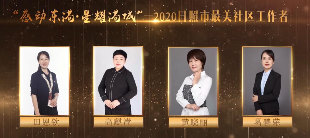 秦楼街道泰安路社区党总支书记 田恩钦、秦楼街道尚德社区党总支书记 高麒滢、日照街道星明社区党总支书记、居委会主任 黄晓丽、日照街道兴合社区党总支书记、居委会主任 葛善荣
