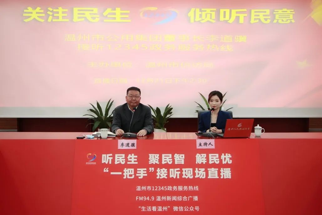 今天(12月21日)下午,温州市公用集团董事长李道骥 做客由温州人民广播电台和“12345”政务服务热线联合举办的大型融媒体视频互动直播节目,现场接听热线,回应百姓诉求。