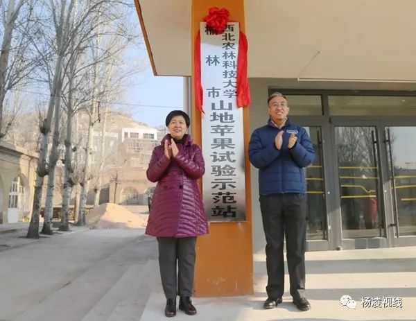 榆林市副市长马秀岚、西北农林科技大学副校长钱永华为榆林市山地苹果试验示范站揭牌