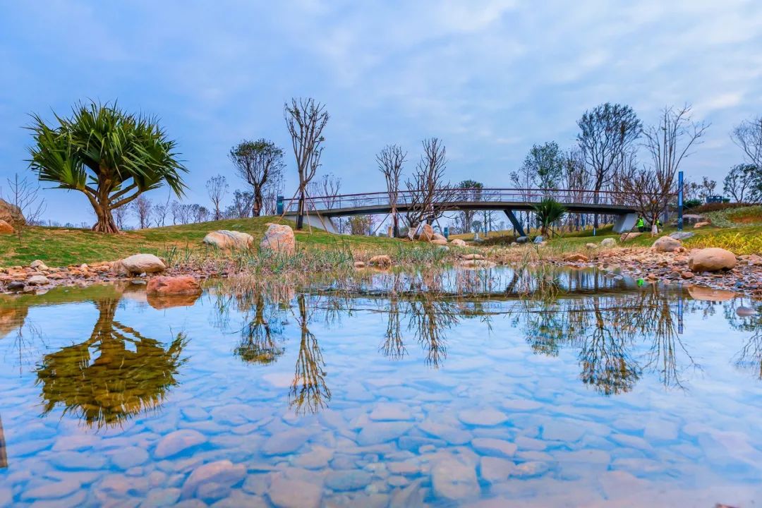 东宝公园紧邻东海路和滨海湾大道,规划总占地面积约190亩,总投资约1.75亿元,分两期建设。其中一期重点景观绿化工程和生态湿地工程已进入收尾阶段,12月底将正式建成启用。