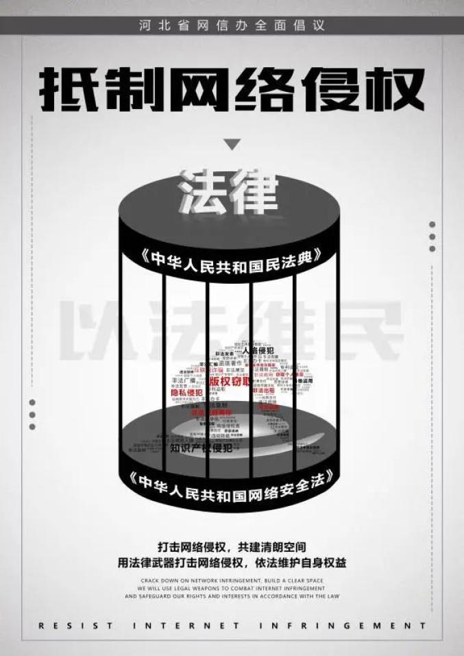 为深入学习宣传《中华人民共和国网络安全法》《中华人民共和国民法典》,提高广大网民关于网络侵权的认识,科普依法处置网络侵权信息的方法,维护广大网民的网上合法权益,河北省委网信办自9月份以来,面向全社会开展了网络侵权治理公益作品征集活动。征集公告发布以来,得到了社会各界的广泛关注和积极参与,涌现出一批主题鲜明、内涵丰富、形式新颖的优秀作品。近期将对初选作品陆续进行展示,欢迎大家通过wxbjbzx@163.com对作品提出宝贵意见。视频组(十)