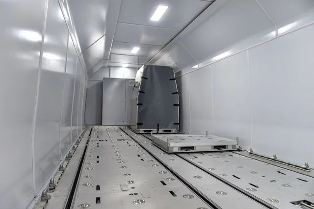 科技日报记者当天在现场看到,这列具有中华鲟骨骼仿生形车头、银白红三色贯通车身的高速货运动车组,每节车厢侧面都有一对2.9米宽、全球最大开度的装载门,这是高速货运动车组区别于普通客运动车组最显著的外观特征。进入车厢内部会发现,高速货运动车组没有车窗,更没有座椅,车厢内平滑的货运专用地板上,设有标准的集装器具。