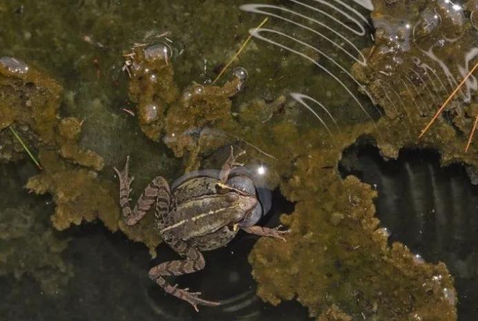 正在求偶鸣叫的陆泽蛙,看到震动的水纹了吗?