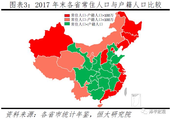 二是通过与常住人口的比较。常住人口大幅超过户籍人口,反映人口总体净流入,当前主要是东南沿海及京津地区;而常住人口小于户籍人口,反映人口总体净流出,主要是川渝贵、湘鄂赣皖桂、冀豫、陕甘等中西部省份。但需注意,人口总体净流入流出与边际净流入流出存在差别,后者依据近期变化判断。