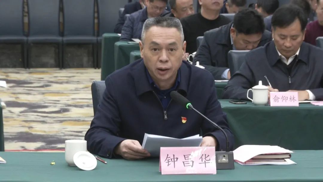 钟昌华在会上发言,汇报我县相关工作情况。