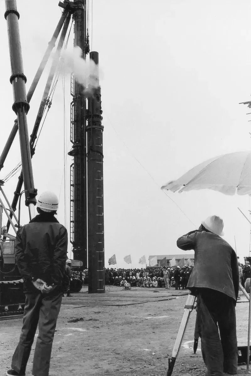 △1978年12月23日,宝钢高炉工地打下第一根钢管桩。来源:中国宝武集团