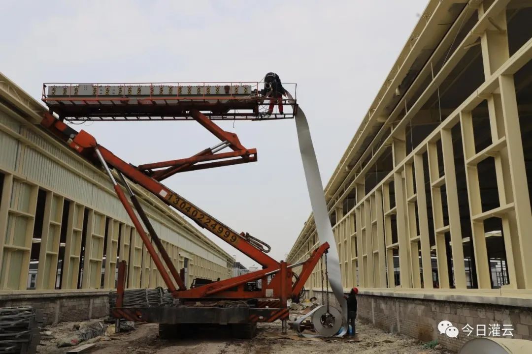 近日,当我们来到灌云经济开发区连云港纺织产业园鹰游二期项目建设现场,一派热火朝天忙碌气息扑面而来,全体建设者奋战在施工一线,加班加点,全力推进厂房扫尾工作。据了解,该项目二期于去年11月初开工,力争今年底完成主体工程建设。
