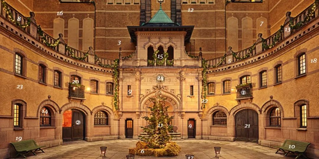 ▲ 哈尔维尔斯卡博物馆(Hallwylska Museet)建于19世纪,是斯德哥尔摩最富有的家族之一所建造的一座优雅华丽的建筑。这座博物馆推出了倒数日历,每天揭晓有关Hallwyl家族的历史故事或传统庆祝圣诞的方式。Photo: visitstockholm.com点击网页上的24个数字,就能听圣诞歌、玩圣诞拼图、学习制作藏红花面包和圣诞节大餐、观看在这幢恢弘建筑里拍摄的复古小视频,让人仿佛置身于昔日隆重而热闹的圣诞节。
