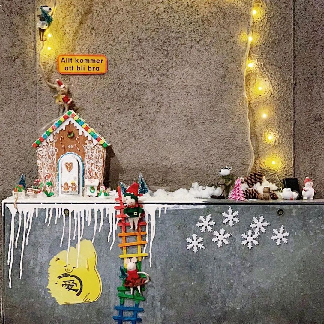 Photo: Arkdesc细心的网友还发现斯京街头暖心的一幕——有人用姜饼为小鼠一家搭建了迷你房子,并附上文字:“一切都会好起来的”(Allt kommer att bli bra),让整座城市人情味儿更加浓郁了。