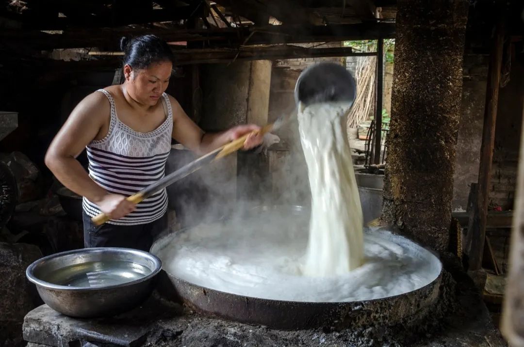 ▲ 豆腐坊内黄豆的转化。图/阮卫明它们从一颗椭圆的豆子,经过了泡豆、磨豆、滤浆、煮浆、点浆和镇压成型等过程,不仅最终产品——豆腐本尊是一种美食,整个生产过程中的“副产品”,也被中国人做成了各种食物。也有一定比例的豆腐,是用绿豆、黑豆等制成,制作过程大同小异。