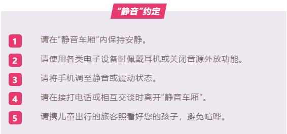 据中国铁路透露:2020年12月24日起,铁路部门在京沪高铁、成渝高铁的部分车次试点“静音车厢”服务。