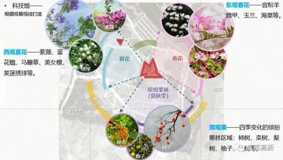 门户景观公园借鉴迪拜人间乐园(Garden of Delights)、繁花森林(Blooming Forest)以及深圳人才公园,是以历史为脉络,利用自然本底,融入科技元素打造的生态化、多元化的智慧公园。