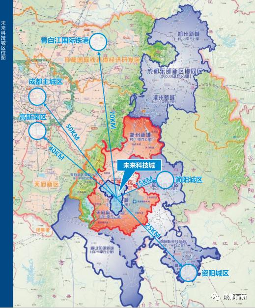 当前,成都正以“一核四区”加快建设中国西部(成都)科学城。其中,由成都高新区全力打造的未来科技城锚定国际创新型大学和创新型企业汇集区的定位,着力打造国际一流应用性科学中心、中国西部智造示范区和成渝国际科教城。未来科技城规划面积约60.4平方公里,位于成都市东部,规划范围东至金简仁快速路,南至南干渠,西至成都第二绕城高速路,北至成自高铁,紧邻天府国际机场。距离成都主城区约50公里(车程约30分钟),距离双流国际机场约51公里(车程约30分钟),距离天府国际机场2公里(车程约5分钟)。