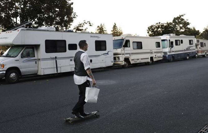 贫富差距之大,在硅谷催生了一个新的经济阶层:Working Homeless,直译过来就是有工作的流浪者,他们有工可做,却无家可归,总人数在2016年就超过了1万人,他们可能是零售店店员、厨师、水管工甚至教师……