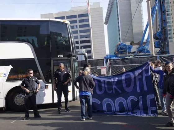 平均而言,硅谷非常富裕。硅谷的平均年收入在2018年达到140,000美元,显著高于加州(81,000美元)和全国(68,000美元)平均水平。但这只是平均,实际上呢,硅谷收入最高的2%控制着该地区27%的财富。但是硅谷居民没有被科技公司兴起惠及,反而只拥有不断上涨的生活成本,而蓝领工人们,还在努力争取时薪能够上涨几美元,否则完全生活不下去。他们开始憎恨,和科技公司频繁发生冲突:袭击苹果的班车,围堵谷歌员工上班的巴士,在 Twitter 上市当天举起抗议标语“你们上市,我们什么也没有”……