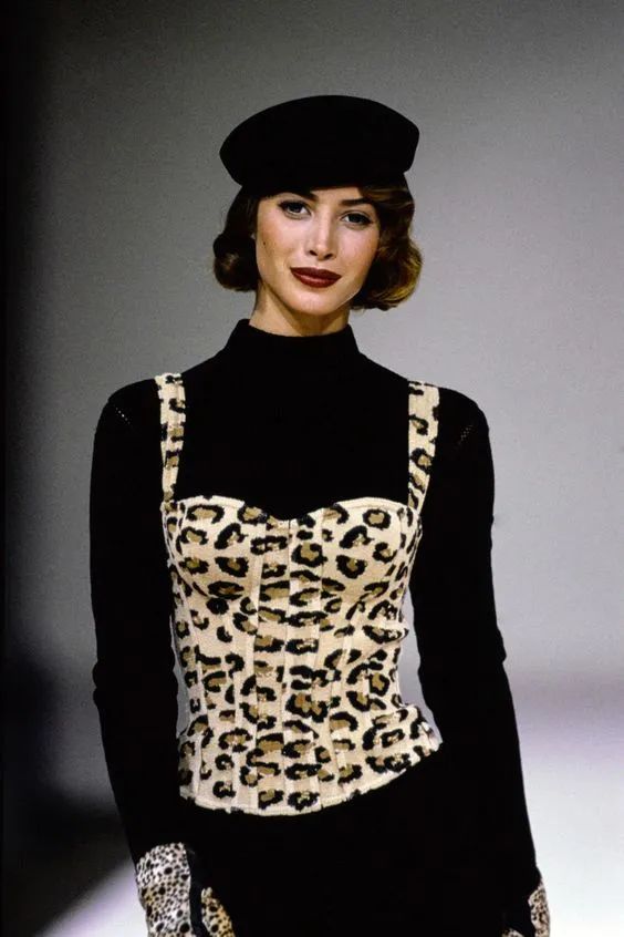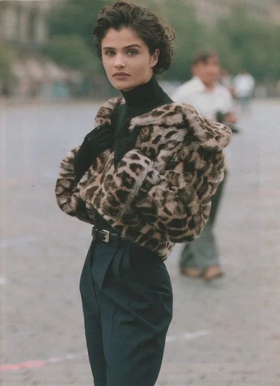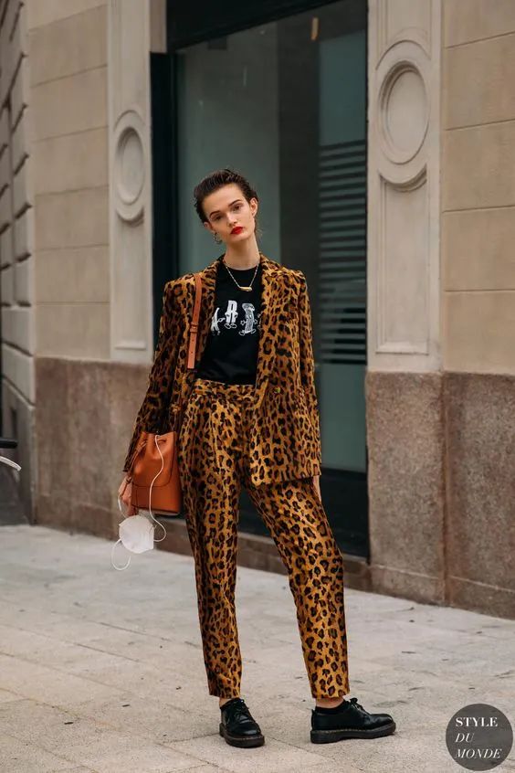 因为豹纹的花色已经具有吸睛百分百的效果所以搭配大多为黑白简约有型的单品