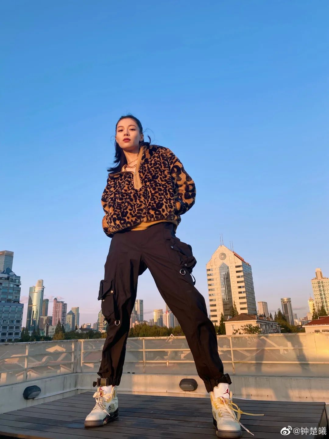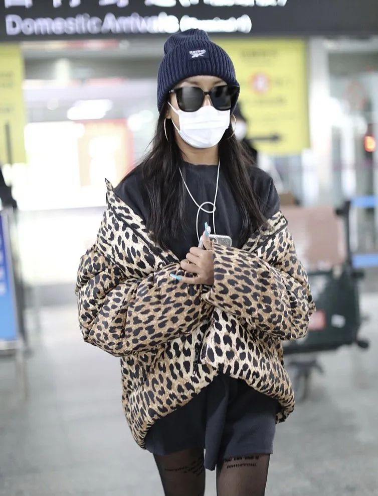 钟楚曦的运动豹纹夹克穿搭