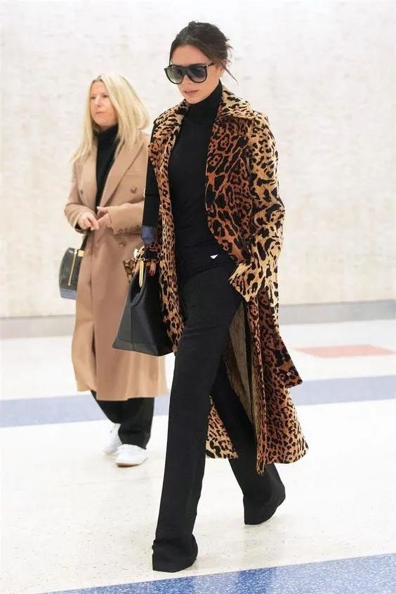 贝嫂的豹纹大衣是妥妥的气场十足