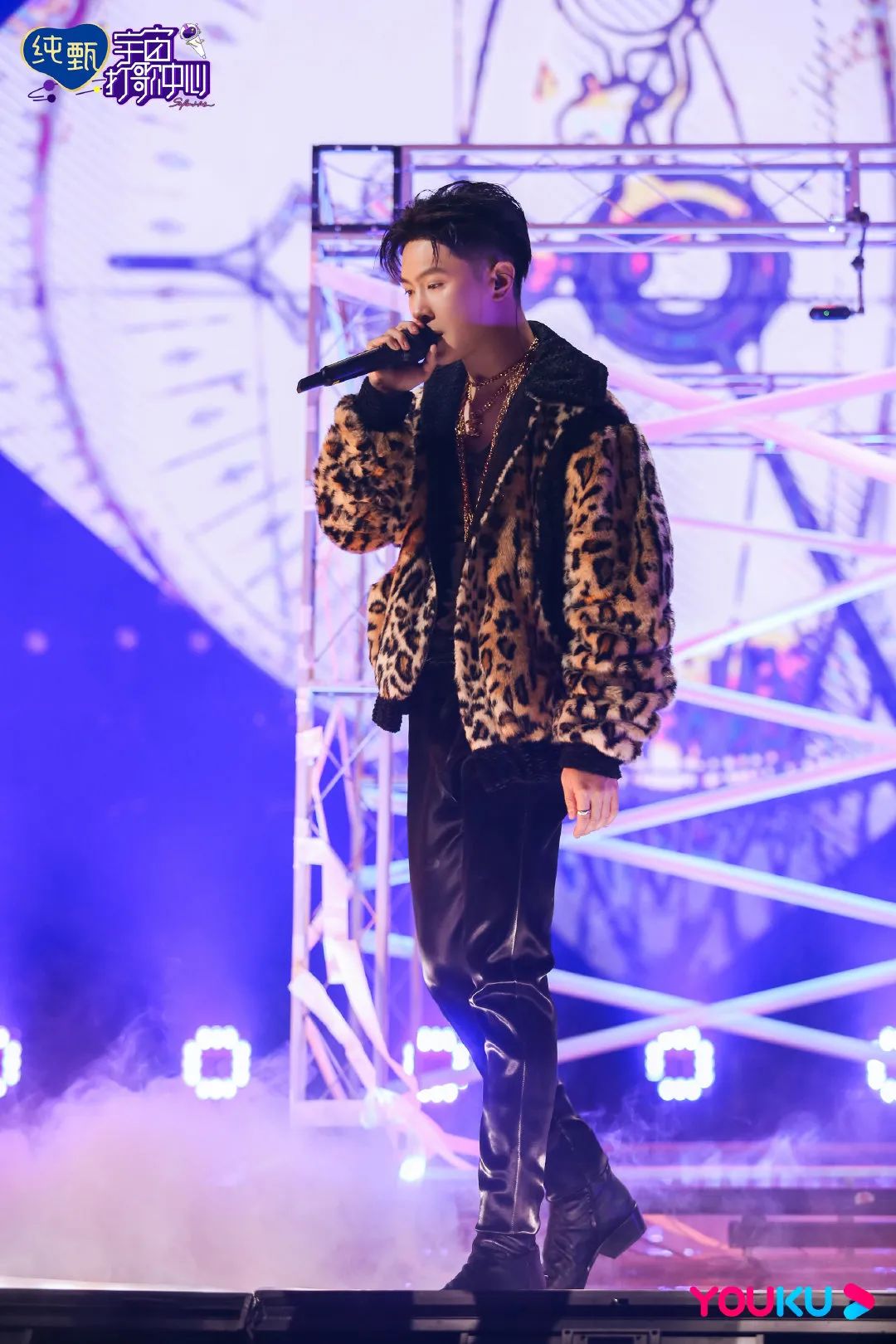 like马伯骞舞台上豹纹夹克搭配皮裤