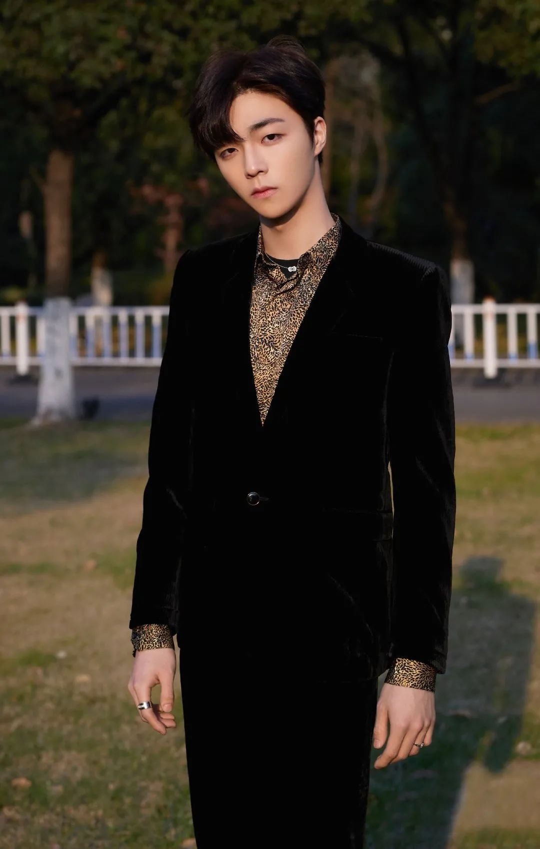 在“和谐统一”的基础上自然就很出挑啦陈立农弟弟选择豹纹衬衫搭配利落剪裁的西装