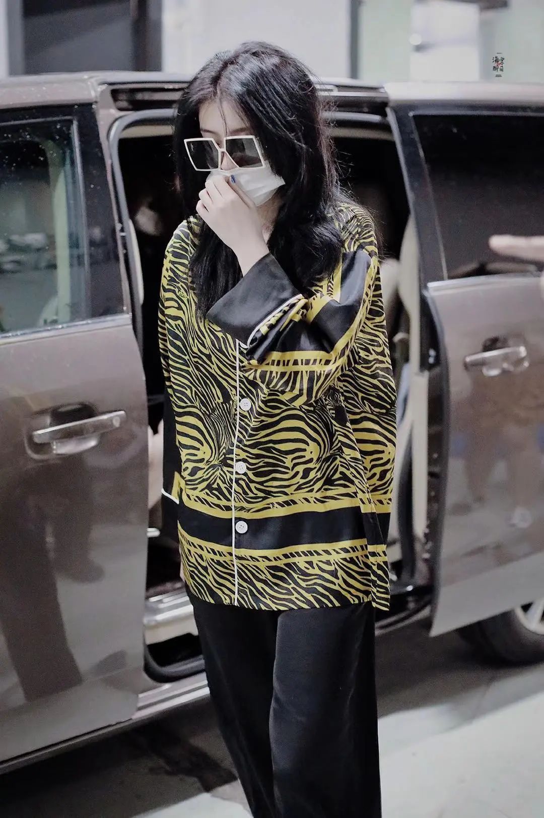 赵小棠的以黄色底斑马纹外套造型真丝材质看起来就很舒适