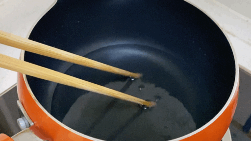 食用油倒入锅中,小火加热至油温5成熟左右就可以倒油了。观察的方法是看油表面有没有鼓出小小的气泡,或者用无水的木筷子插进油中间,筷子周围迅速出现密集的小泡泡,就说明时机成熟了。