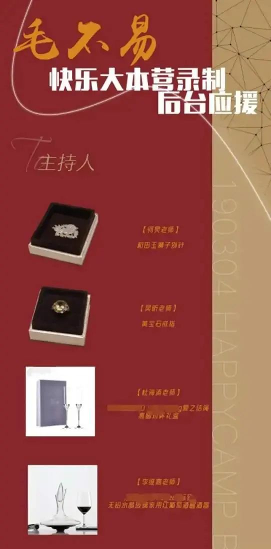 如果《快乐大本营》的应援礼只有零食和保温杯,事情不会闹到这步。问题在于这些应援礼贵重的程度令人震惊。