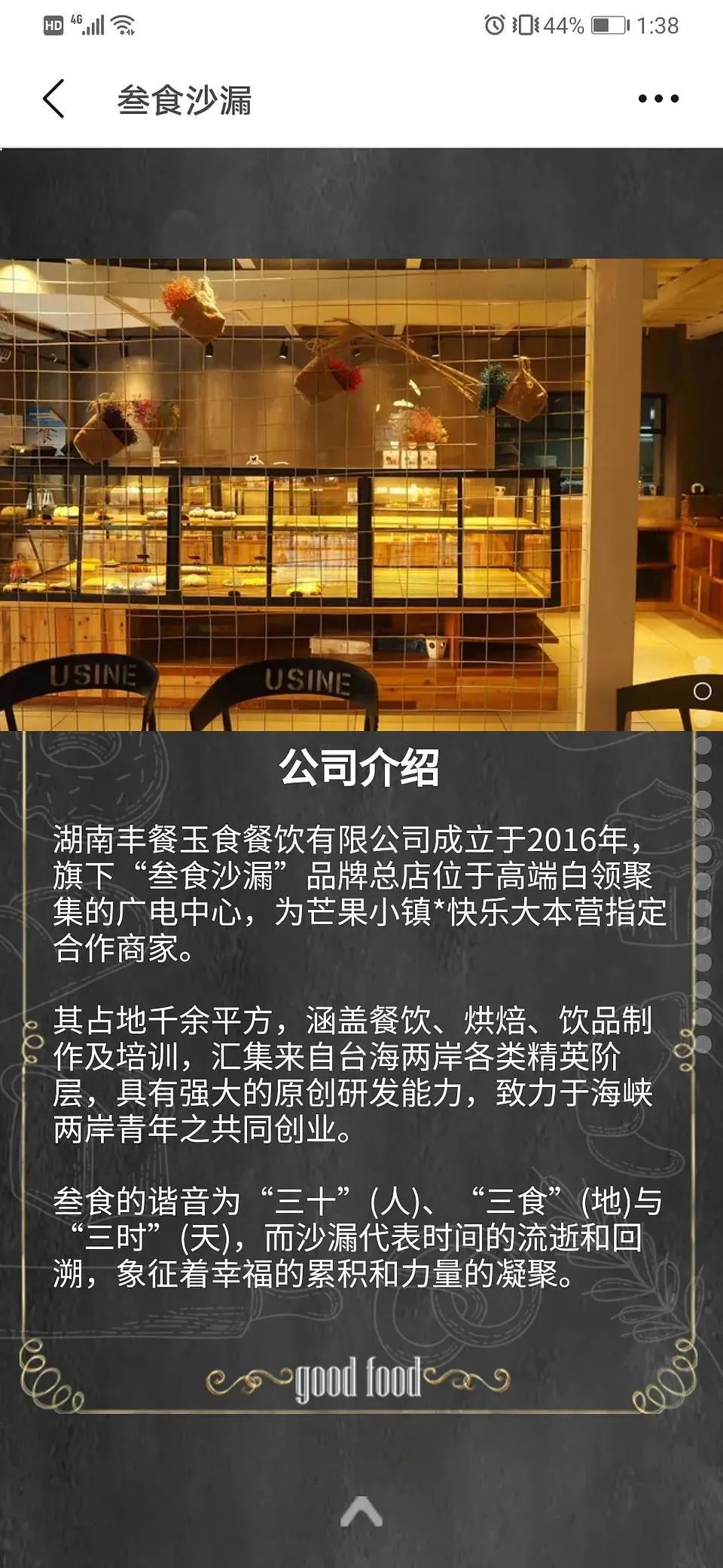 食物采购的店铺也是统一的,是一家位于湖南广电中心的甜品店“叄食沙漏”,品牌官网上很直白地写着“快乐大本营指定合作商家”。