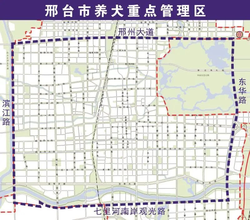 2020年11月18日,经市政府批准,邢台市主城区内东华路、七里河南岸观光路、滨江路、邢州大道合围区域为养犬重点管理区域,其他县(市、区)养犬重点管理区的划定,由各县(市、区)人民政府确定并及时向社会公布。