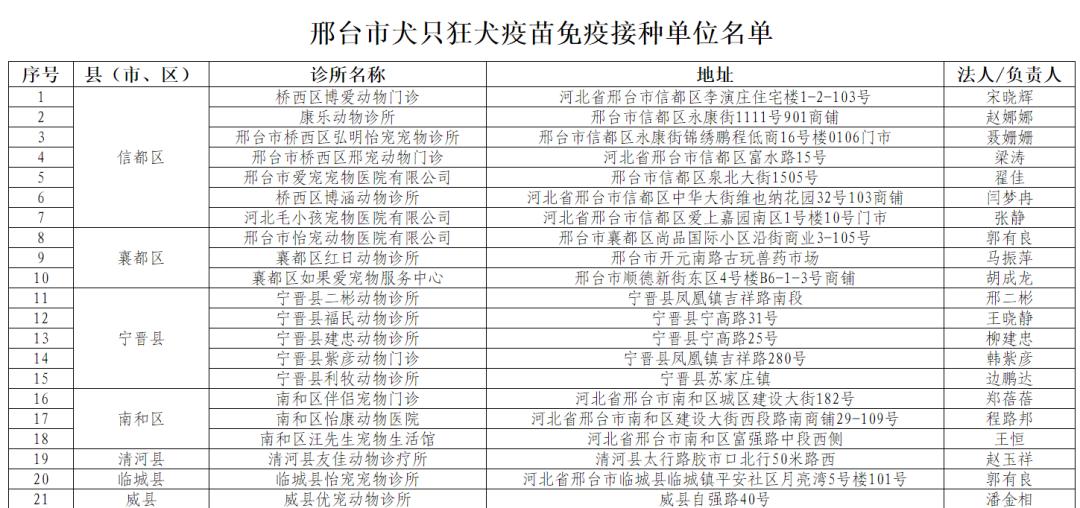 根据《邢台市养犬管理条例》规定,公安机关应会同农业农村部门采取措施,逐步实现养犬登记与犬只狂犬病免疫在同一地点办理。经与农业农村局研究,犬只免疫和发放犬牌工作均在各地定点免疫机构办理。开发区因无定点免疫机构,暂由各辖区派出所发放犬牌。
