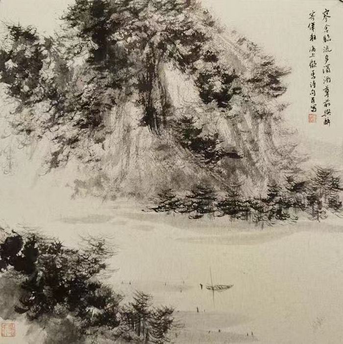 顾宝兴(又名顾马)丹青生涯数十年,早年师从金陵画派亚明先生,于金陵画派的山水创作多有钻研,平常多画马。此次展出的山水手卷《秋山明远图》也是他近年来的山水力作。敬华2020——上海美术学院中国画系教师迎新作品展