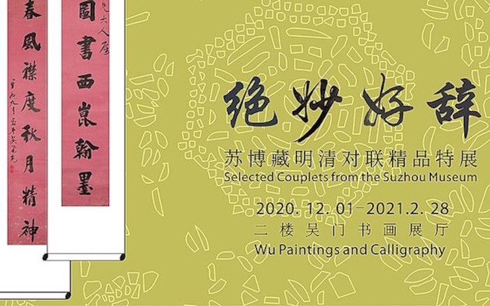 展览将展出宋徽宗《鸲鹆图》等宋、元、明、清及至近现代花鸟名家作品。包括元代李衎、倪瓒,明代沈周、文徵明、陈淳、徐渭,清代“扬州八怪”近百件精品,勾勒半部中国花鸟画史,构成南博展览史上最强大的花鸟画阵容。绝妙好辞——苏博藏明清对联精品特展