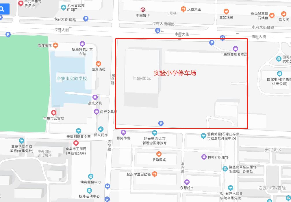 建行广场停车场建行广场停车场位于束鹿大街建设银行门口,市第一医院西侧,占地面积 2266.8平米,规划停车位49个,其中配备充电桩车位10个,采用智慧停车系统。(目前智慧停车系统正在调试中,车辆可进场停车。)