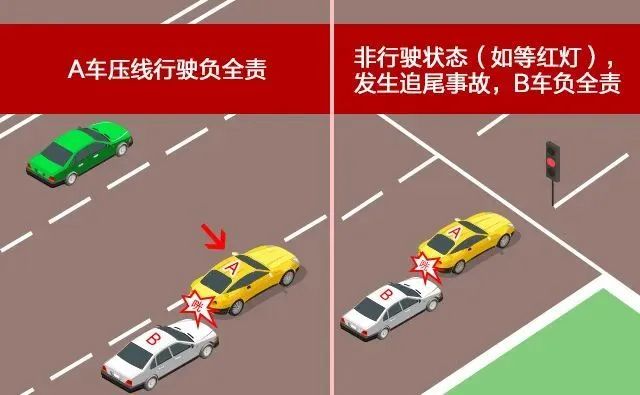 温馨提示如果是在前车非行驶状态下(例如等红绿灯、堵车时)发生的追尾事故,仍由后车负全责。
