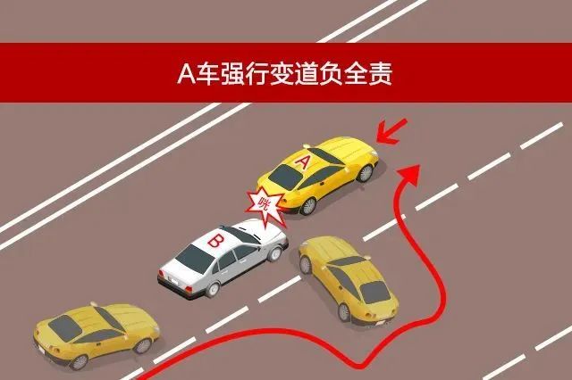 在车辆直行期间,如果前车(A车)强行变道,导致后车(B车)来不及避让,发生的追尾由前车(A车)负全责。