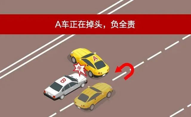 A车与B车并排同向而行时,如果A车突然加速并掉头,在A车掉头过程中B车避让不及与之发生碰撞,此时A车应负全责。